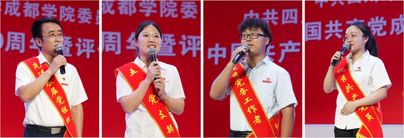宜宾校区党工委书记龙成松、法语意大利语学院学生党支部书记梁巧娟、西欧语言学院党总支和教工党支部纪检委员赵航飞、中东欧语言学院俄语专业学生刘玉宇分别代表受到表彰的集体和个人分享了“如何践行共产党人的初心和使命”的生动事迹,激励全校师生以先进典型为榜样,积极投身学校的改革发展,砥砺奋进、开拓创新,为学校的建设做出新的更大的贡献。