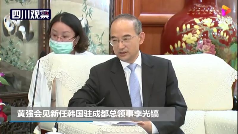 黄强代表四川省人民政府欢迎李光镐总领事来川履新,并简要介绍四川经济社会发展情况。他说,新冠肺炎疫情暴发后,四川认真落实两国元首通话精神,与总领事馆等共同开通“中韩快捷通道”,有力推动双方复工复产工作。“十四五”是四川最好的发展时期,成渝地区双城经济圈建设等重大机遇在川交汇叠加,四川愿与韩方共同努力,推动双方关系再上新台阶。希望总领事推动韩国政要通过视频形式出席第十八届西博会,并在疫情得到全面控制后推动更多政要访问四川,在更高层面提升双方合作水平;继续推荐具有良好发展前景的韩国企业进驻中韩创新创业园,共同打造中韩两国合作示范园区;进一步密切科技、教育、文化、体育、旅游等领域交流合作,更好造福双方人民。
