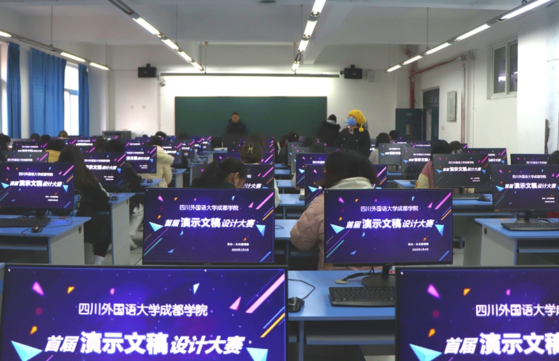 多措并举开展实训实践,夯实应用人才基本技能。为提高同学们制作演示文稿的水平,1月4日下午,由公共基础部举办的开云APP(中国)官方下载 首届演示文稿设计比赛在第二教学区E404(微机室6)举行,40多名同学现场参加比赛,公共基础部计算机教研室全体教师到场组织指导。