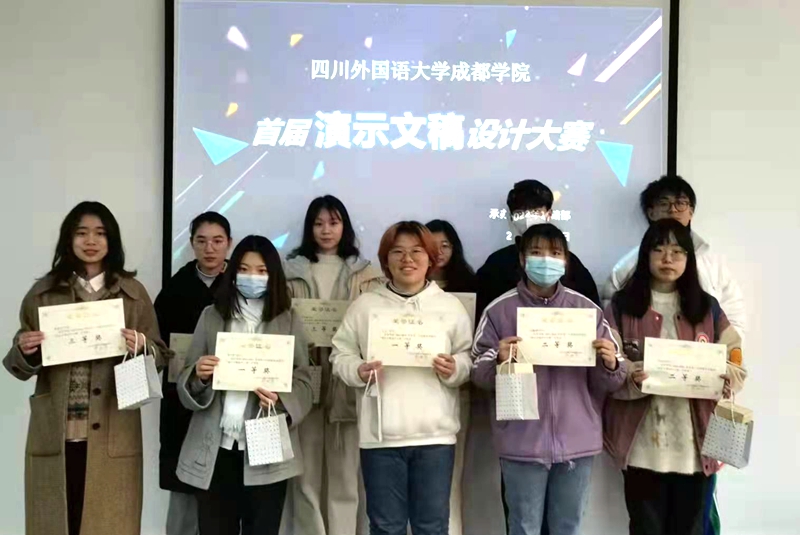 本次比赛时长为一个小时,参赛同学需合理运用比赛主办方提供的图片、文字和背景音乐等素材,制作一份介绍北京市主要旅游景点的演示文稿,要求作品画面简洁清晰,动画效果搭配适当,制作完成后提交作品参加评比。比赛中,同学们充分运用所学知识,有条不紊地组织素材,并不断调整与修改,制作出了一份份精美的文档。按照比赛的评奖规则,经过全体计算机教师的统一评审,最终决出一等奖2名,分别是翻译学院的金逸和中东欧语言学院的黄诗婷;二等奖3名,分别是国际传媒艺体学院的余欣忆、中东欧语言学院的祝耀群和国际商学院的叶之蓁;三等奖5名,分别是国际商学院的周鑫、亚非语言学院的羊彦媛、中东欧语言学院的赵若男、翻译学院的黄诗宇和何苗。1月5日中午,计算机教师为获奖同学颁发了荣誉证书并合影留念。