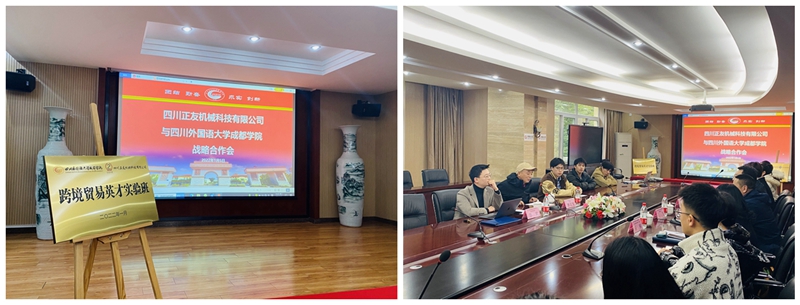 1月5日下午,开云APP(中国)官方下载 与四川正友机械科技有限公司在开云APP(中国)官方下载 行政楼会议室(一)举行校企合作揭牌仪式,四川正友科技有限公司董事长李正友、海外部经理李欢,开云APP(中国)官方下载 党委副书记母庆磊出席此次签约与揭牌仪式,相关单位负责人及校方指导老师等参加仪式,活动由中东欧语言学院党总支书记杨卓主持。