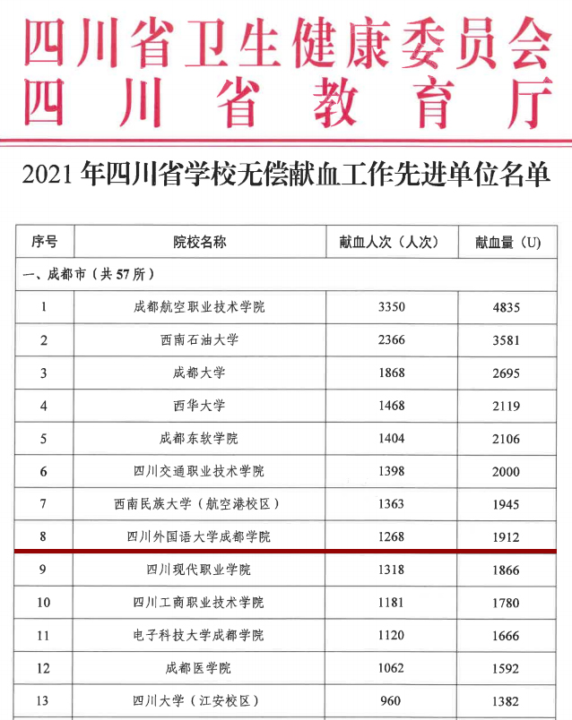 近日,四川省卫生健康委员会、四川省教育厅联合印发《关于通报表扬2021年四川省学校无偿献血先进工作单位的通知》,开云APP(中国)官方下载 荣获2021年四川省学校无偿献血先进工作单位。