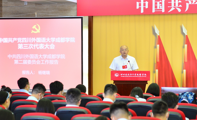 胡卫锋代表省委教育工委、省教育厅对大会的顺利召开表示热烈祝贺,向长期以来为学校改革和发展作出贡献的广大党员和师生员工致以诚挚问候!他表示,学校的办学水平和综合实力不断提高,培养了一大批优秀应用型人才,为四川高等教育发展作出了重要贡献。在学校召开党代会研究部署未来五年重点工作之际,他提出三点要求:一是坚持强基固本,夯实学校发展政治根基:要深化三全育人综合改革,全面落实民办学校党建重点任务,健全党委参与决策和监督的制度机制,充分发挥党委政治功能,处理好党委与董事会行政决策层之间的关系、监督保障与自主办学之间的关系。二是抓实立德树人根本任务,办好人民满意的大学:要以独立学院转设为民办普通本科高校为契机,强化办学特色优势,把学校建设成应用型、复合型涉外优秀人才培训基地,深入开展“对标竞进、争创一流”活动,推进新文科改革,加强课程和师资队伍建设。三是发挥学校优势作用,更好服务经济社会发展:要发挥专业外语院校优势,主动融入和服务国家重大战略部署,对接产业发展和区域布局需要,推动学校发展与治蜀兴川同向同行。