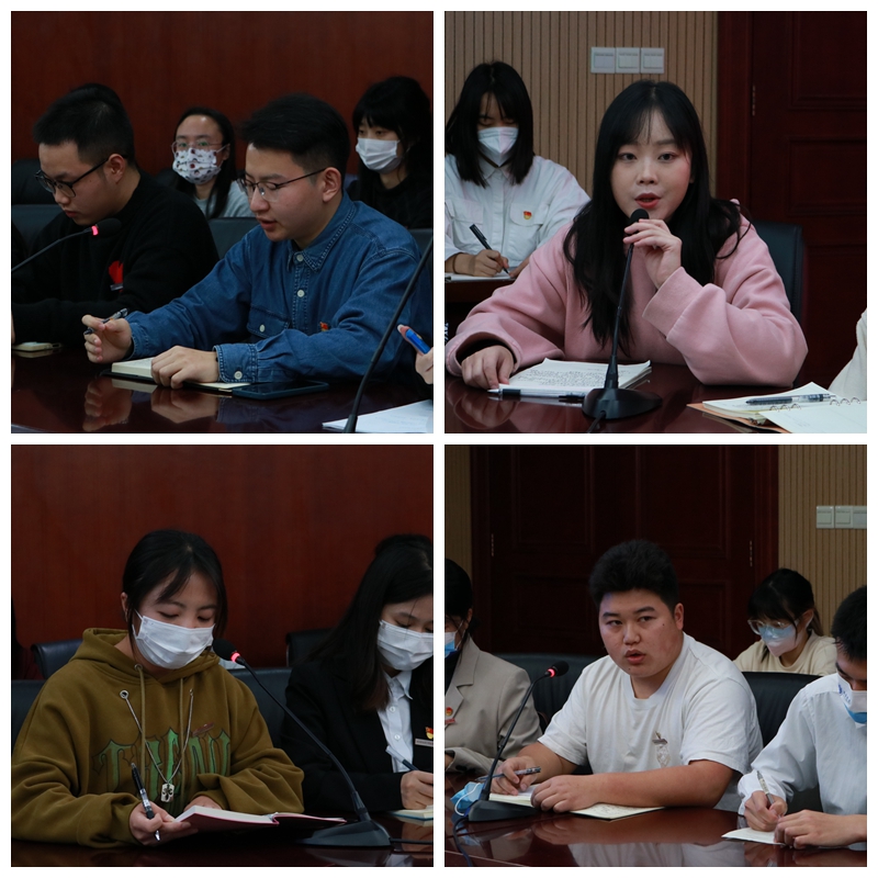 座谈会上,各二级学院学生党员代表、校团委干部代表以及非党员非干部学生代表积极发言,分享学习党的二十大精神的心得体会。他们有的立足学生党员身份,表示要学习贯彻党的二十大精神,紧跟党走,勇敢肩负起时代赋予的使命与重任,以更强的担当、更高的标准、更大的作为,努力成为合格的中国特色社会主义建设者和接班人;有的抒发青年大学生志向,表示要用高标准要求自己,既要努力学好专业课,也要积极投身社会实践,以奋斗擦亮青春底色;有的聚焦学生干部使命,表示要树立责任意识、反思意识,践行“三严三实”,更好地、更准确地管理团队、服务同学,开展同学们真正需要的活动;还有同学结合自身专业,立志要在国际贸易、对外宣传、学前教育等事业中有所作为,为全面推进中华民族伟大复兴注入青春力量。