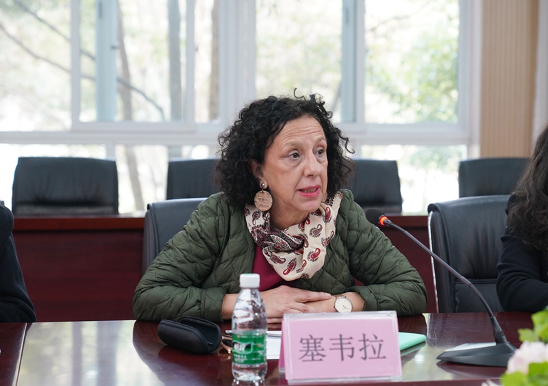3月6日上午,西班牙驻华大使馆教育参赞玛利亚·路易莎·奥乔亚·费尔南德斯、北京塞万提斯学院院长伊莎贝尔·塞韦拉·费尔南德斯、西班牙驻成都总领事夫人玛利亚德玛尔·埃蒂安·佩雷兹一行访问开云APP(中国)官方下载 。开云APP(中国)官方下载 副校长沈光临、国际合作与交流处和西欧语言学院相关负责人在会议室(一)与奥乔亚参赞一行进行了友好会谈。