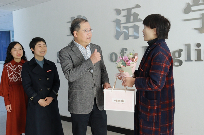 在第113个“三八”国际劳动妇女节到来之际,3月8日上午,校领导杨继瑞、张华春、沈光临深入各二级学院和职能部门,亲切走访慰问学校女性教学名师代表、外籍教师代表、优秀教职工代表和优秀辅导员代表。机关职能部门相关负责人陪同慰问。