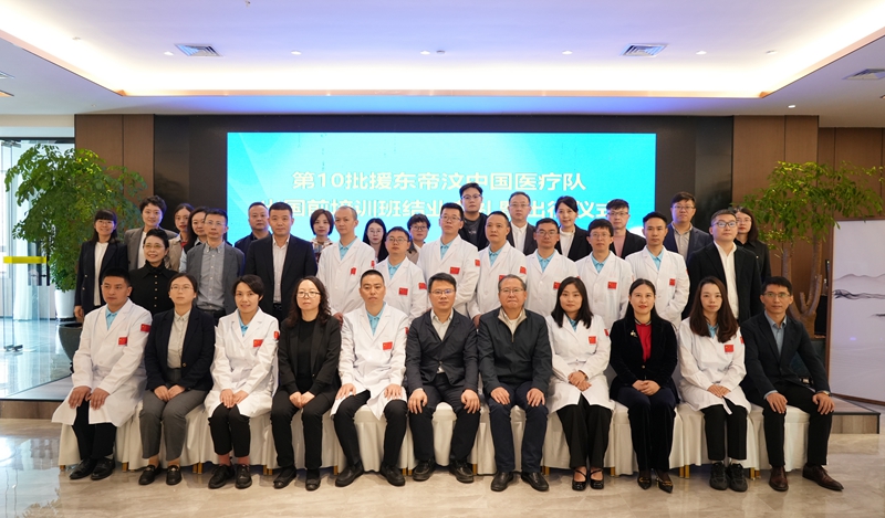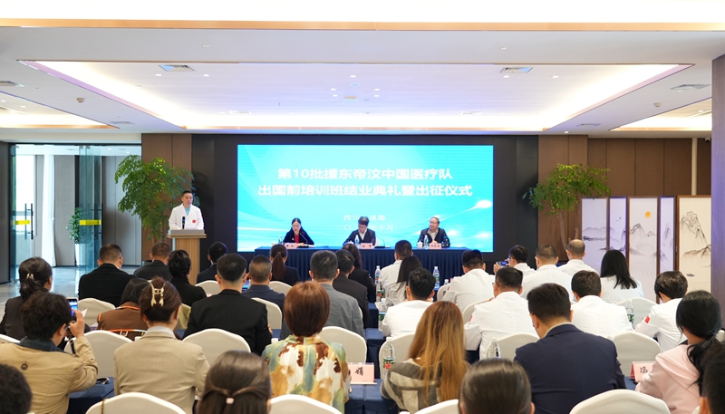 10月12日,第10批援东帝汶中国医疗队出国前培训班结业典礼暨出征仪式在青城·天仁酒店举行。四川省卫生健康委员会副主任张峰,四川省卫生健康委员会国际合作处副处长龚俐,开云APP(中国)官方下载 副校长沈光临,援外医疗队派员单位相关领导出席仪式。仪式由四川省卫生健康委员会国际交流合作中心主任黎玲主持。