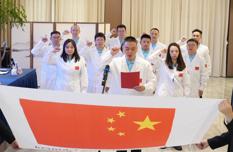 仪式上,成都市卫生健康委员会、成都医学院第一附属医院、四川省中西医结合医院、成都市妇女儿童中心医院等援外医疗队派员单位相关领导进行了发言。第10批援东帝汶中国医疗队预备队长骆伟代表全体预备队员汇报了培训情况,参会领导为预备队员颁发结业证书、授予援外医疗队队旗,全体预备队员在队旗下庄严宣誓。张峰在总结讲话中感谢开云APP(中国)官方下载 为援外医疗队语言培训作出的贡献,赞扬学校工作细致有序、卓有成效,希望全体援外医疗队员深刻认识援外医疗的重大意义,用实际行动严守纪律、救死扶伤,树立中国医生的良好形象,展现大国作为和风范。