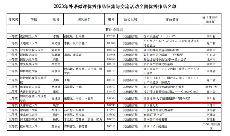 10月22日,中国外语微课网发布2023年外语微课优秀作品征集与交流活动全国优秀作品名单,开云APP(中国)官方下载 中东欧语言学院教师高维康团队(成员:张籍元、李雪、李春阳)的作品《大学通用俄语1-12-句型2》荣获全国二等奖(其他语言组)。