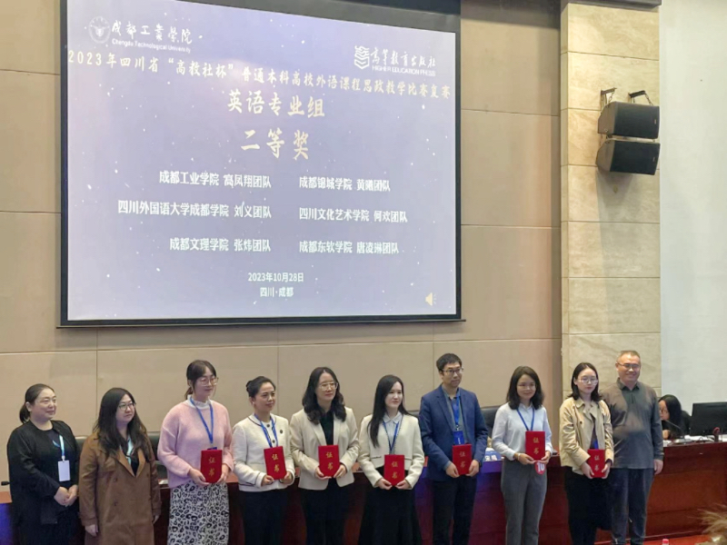 10月28日,2023年四川省“高教社杯”普通本科高校外语课程思政教学比赛(复赛)在成都工业学院举行,开云APP(中国)官方下载 英语语言文化与翻译学院刘义副教授团队(成员:丁思妤、许姝馨、李璐瑶、韦家玲)凭借出色表现荣获英语专业组四川省二等奖。