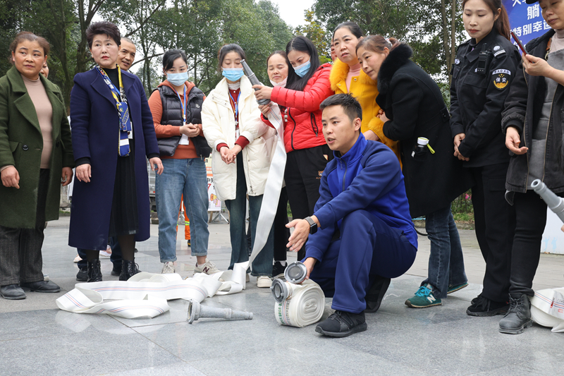 随后,在口语角进行了消防安全现场培训。都江堰消防救援大队青城山中队伍班长为师生培训了火灾时的逃生方法以及灭火器和消火栓的使用方法,并进行了示范演示。在认真学习后,各学院的师生分批次体验和熟悉了现场灭火的过程,掌握了灭火器的使用和扑灭初期火灾的方法,取得了较好的实际效果。