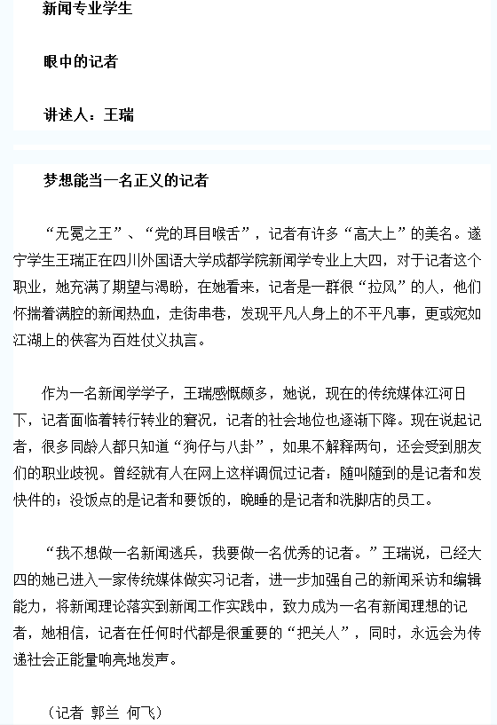 新闻专业学生王瑞:梦想能当一名正义的记者