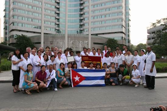 为确保古巴支援我国地震灾区的医疗队顺利开展工作,我院在接到四川省教育厅对外交流合作处招募翻译志愿者的通知后,精心选派了西班牙语系骆瑶、李超、周瑶、马玉霞、张曾、陈翔、肖萧、荆青姗、邹源、陈君兰等十名同学赶赴四川省人民医院,协助古巴医疗队开展医疗救治工作。