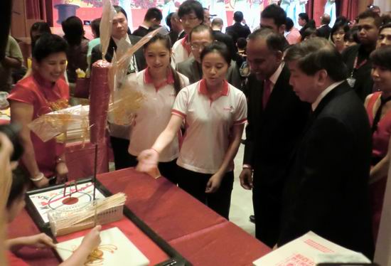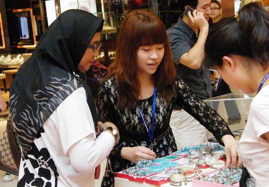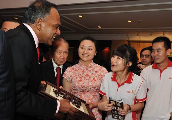 今年是我院第三次选派学生赴新加坡实习,同学们在新加坡著名商场Vivo city,为新加坡人民和全世界游客介绍来自全国各地的具有浓郁中国特色的艺术品。工作中,同学们充分发挥外语专业优势,为新加坡人民和全世界游客了解中国文化艺术搭起了一座沟通的桥梁。同学们用流利的英语口语、出色的沟通能力以及良好的团队意识和精神风貌,为“春城洋溢华夏情”文化艺术旅游展的顺利进行作出了积极的贡献,也赢得了各界的一致好评。农历大年初一,张萍、林楠、林菁菁、颜畅、李班玉珏等5名同学还作为代表,到新加坡中华总商会介绍中国工艺品,受到了新加坡内政部兼律政司尚穆根部长的好评。