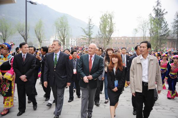 于祎同学全程陪同鲍姆加藤先生出席了整个活动。4月19日,省委书记刘奇葆会见了鲍姆加藤先生,于祎同学为刘奇葆书记和鲍姆加藤先生的交流担任了翻译。会谈后,于祎同学陪同鲍姆加藤先生考察了汶川映秀等地,参观了大熊猫基地、武侯祠、锦里等旅游景点。