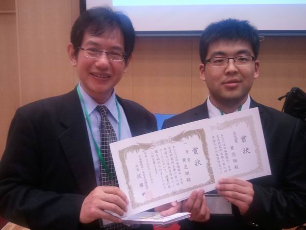 黄志翔同学(右)在第八届“中国人的日语作文比赛”颁奖典礼现场领奖