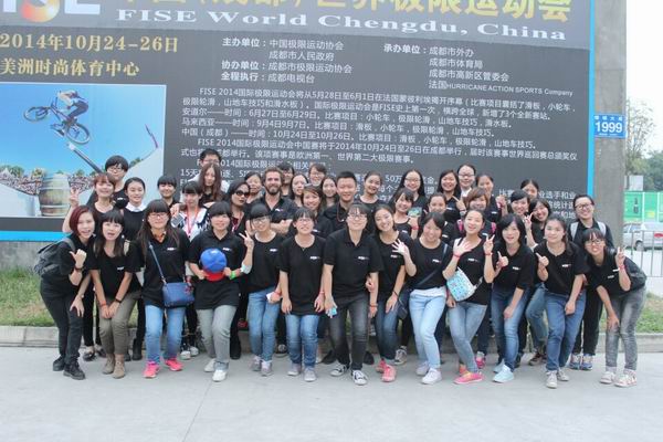 日前, FISE2014国际极限运动会中国赛在成都举行。我院团委应邀组织了47名学子(其中法语专业3名、意大利语专业1名、西班牙语专业1名、英语专业42名)担任此次极限运动会的志愿服务工作。