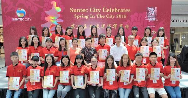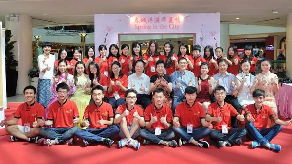 担任“春城洋溢华夏情”文化艺术旅游展翻译和助理工作的我院师生在新加坡合影