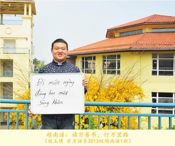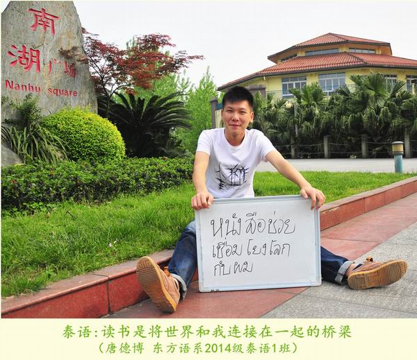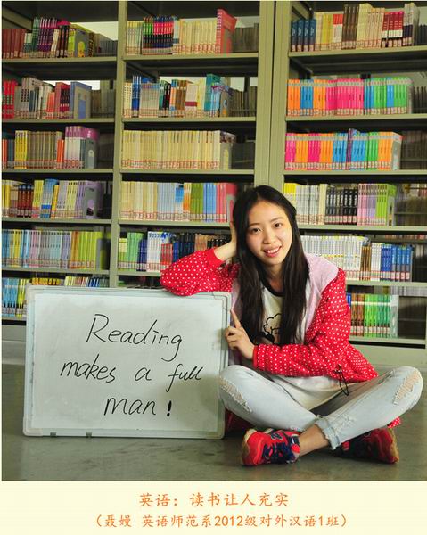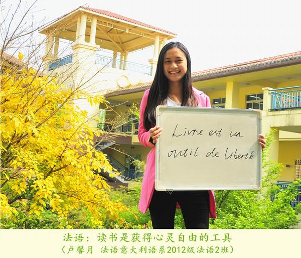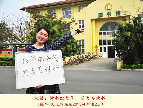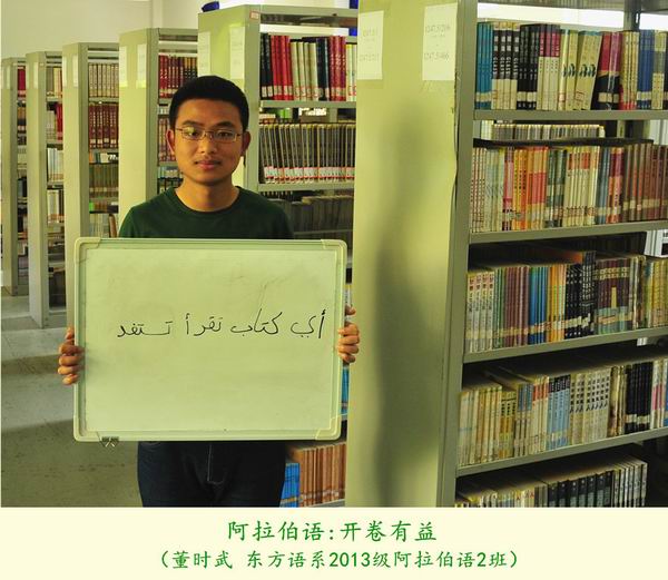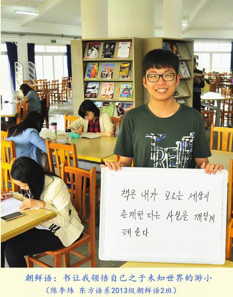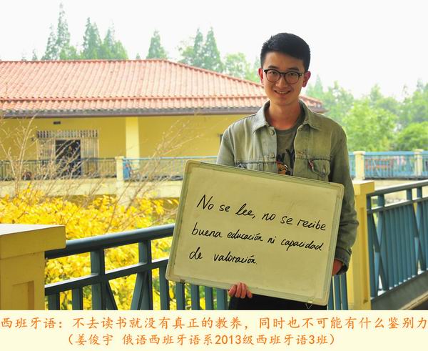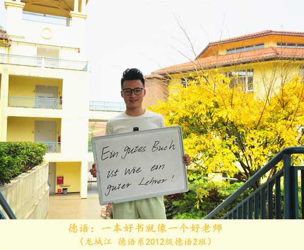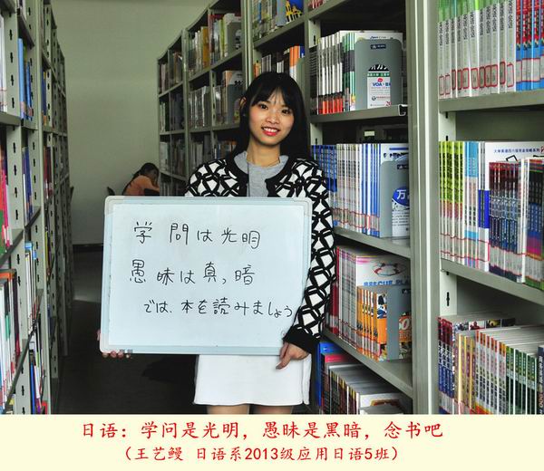 第20个“世界读书日”之际,我院学生选择了一种特别的方式致敬“世界读书日”:12位来自各专业的学生用所学语言在白板上写下读书格言,并在学院图书馆的不同地点拍照纪念,形成了一组名为《今天我们用12种语言谈“读书”》的创意组照。
