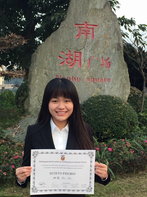 在由厄瓜多尔驻华大使馆举办的全国西班牙语征文比赛中,我院葡萄牙语西班牙语系2013级西语2班的姚瑶在和北外、上外、西外等高校学生的竞争中名列第五。“努力不一定成功,放弃一定失败”,姚瑶用自身经历证明了什么是“天道酬勤”。