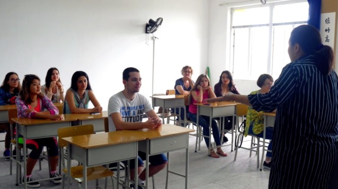 留学生们都是上大学后才学的汉语,他们不约而同地表示,汉语最难的无疑是音调及汉字的书写。为此,教授综合汉语课程的姚波老师很注重他们平时的课文朗读练习,并会让他们多多练习造句,“一个叫安冰的女生,经常会主动在课下拿她造的句子给我看,让我来纠错。”