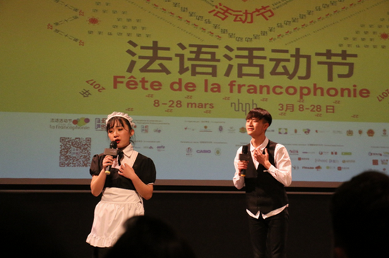 法语活动节是法国驻成都总领事馆举办的传统赛事,本届法语活动节面向高校学子设置了法语歌曲大赛和法语戏剧比赛两项赛事。在法语歌曲大赛中,朱玉与来自西南地区各高校的19名法语专业学生同台竞技,她选用了法国新秀歌手Louane的《Jour 1》,并自己改编了这首歌,将吉他与尤克里里结合在表演中,将歌曲完美演绎,赢得了评委的一致好评,荣获法语歌曲大赛第一名,并成功晋级全国总决赛。在法语戏剧比赛中,每所高校选派两人参赛,我院汪小棱和龙宇的参赛剧目选自马里沃的《爱情偶遇游戏》,两位同学将这个充满难度的法国中世纪戏剧演绎得非常生动,赢得了现场的热烈掌声,并最终荣获了第二名。