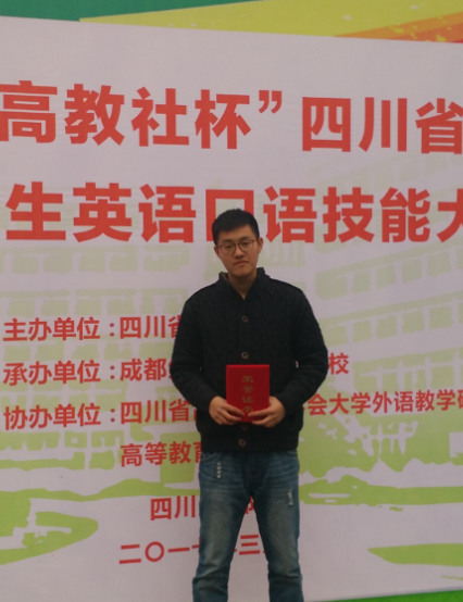 3月18日,由四川省教育厅主办、省高教学会和高等教育出版社协办的2017年四川省大学生(专科)英语口语技能大赛在成都举行。我院翻译系专科学生蒋理在本次比赛中以全场最高分的成绩荣获英语专业组第一名。
