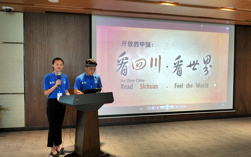 按照工作安排,三名学生全程为代表团在川期间的考察交流担任翻译志愿者,其中,丁泉程担任政治领域组的翻译志愿者,邓慧铭担任经济领域组的翻译志愿者,蒋学兰担任社会领域组的翻译志愿者。同学们以流利的西班牙语为代表团介绍了省情市情,带领团员们考察了成都中国-欧洲中心、天府新区、省大学生双创中心、省群团中心、省青少年服务台,参观了大熊猫繁育研究基地、郫都区战旗村、中铁二局等单位,深入了解了政治、经济、社会等领域的组织运行和建设成果。