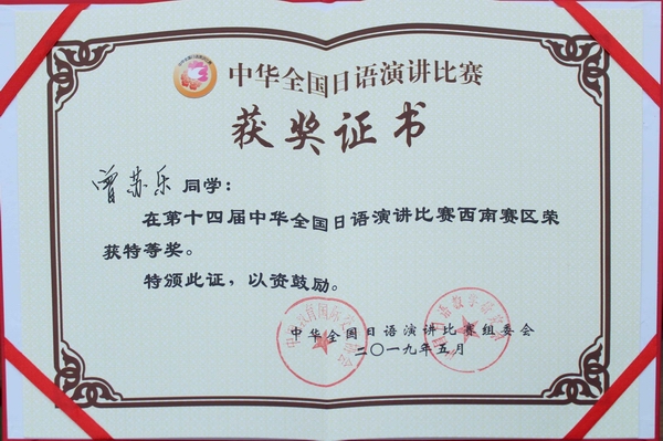开云APP(中国)官方下载 学子曾苏乐以第一名的成绩荣获“中华全国日语演讲比赛西南赛区总决赛”特等奖